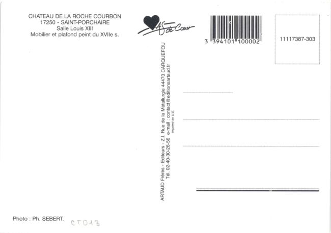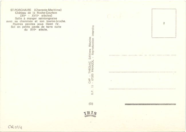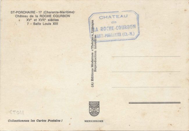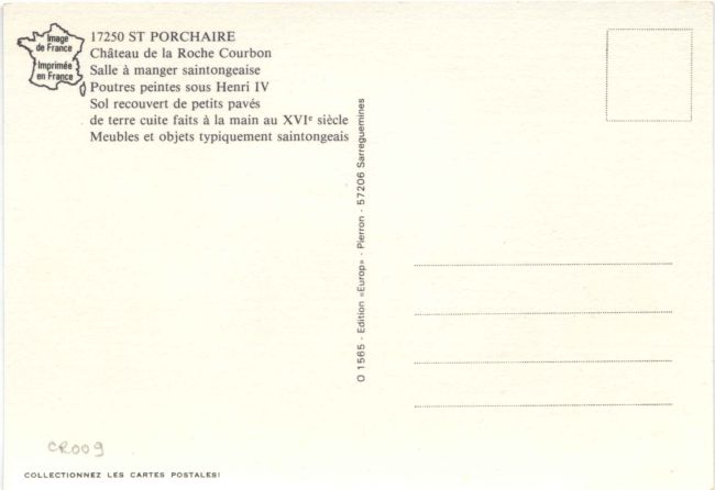 | Salle à Manger Saintongeaise, poutres peintes sous Henri IV (cachet 1986) Pierron (Europ) 833 après 1960. Cls, 15x10 |