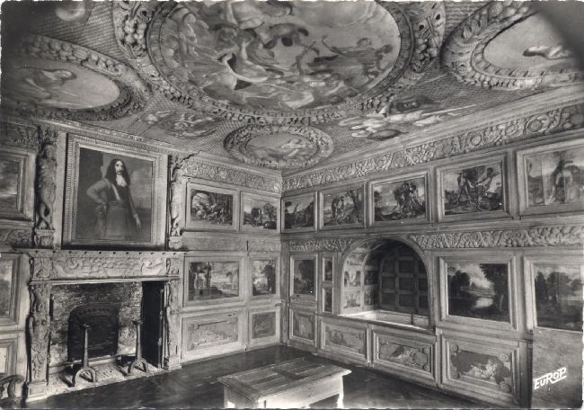 Salle Louis XIII. Mobilier et plafond de l'époque (petite déchirure). Gaby - 19 1955-1970. NB, 15x10 |