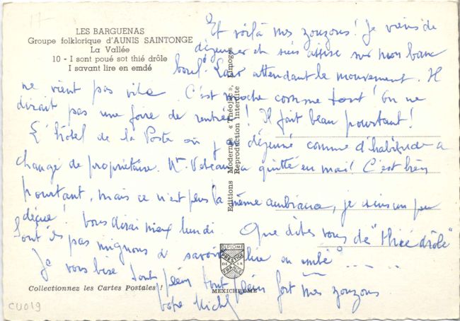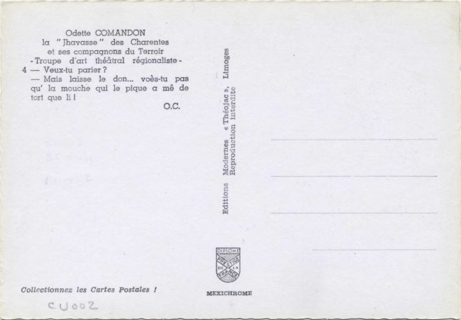 | La Jhavasse des Charentes le jhène se chauffe à la drôlesse Théojag (Iris) 2 1960-1970. Clr, 15x10 |