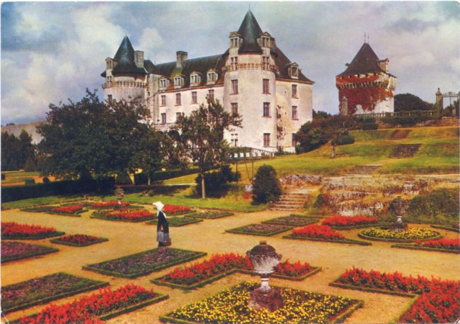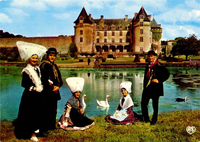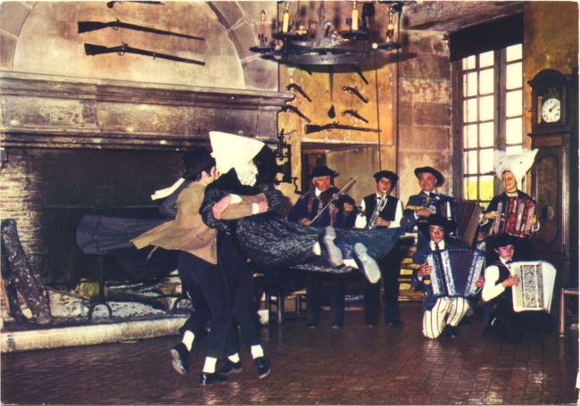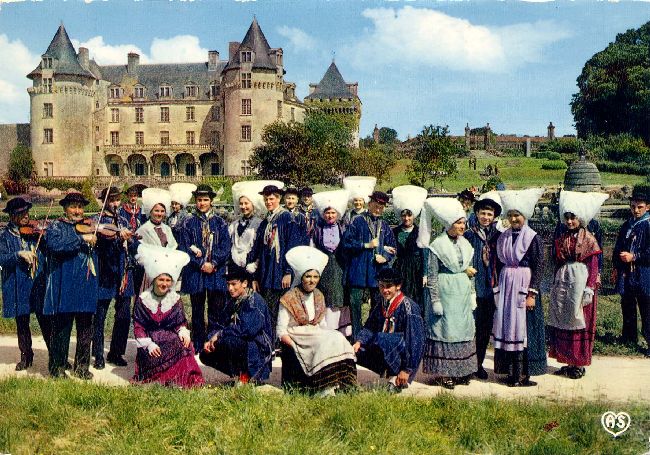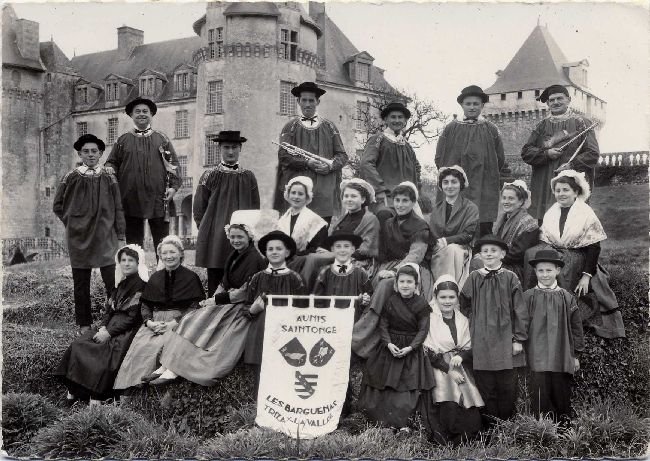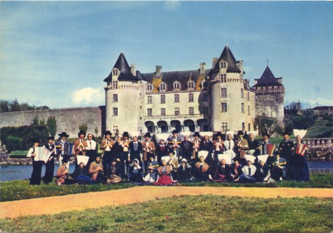 | Les Batégails : Groupe Folklorique devant le château Arum A.588 1960-1980. Clr, 15x10 |
