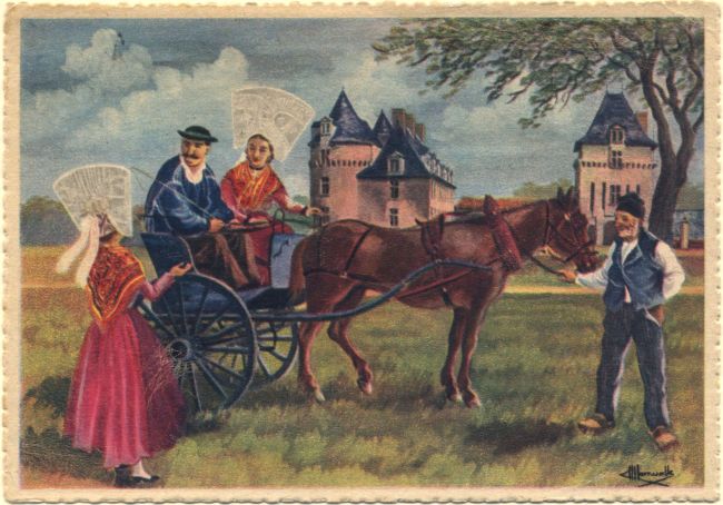 | En parcourant la Saintonge. Dessin carriole sur l'esplanade Gaby - 4 1950-1956. Cls, 15x10 |